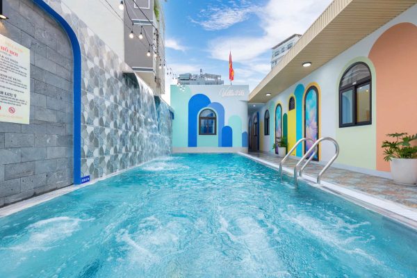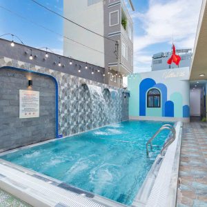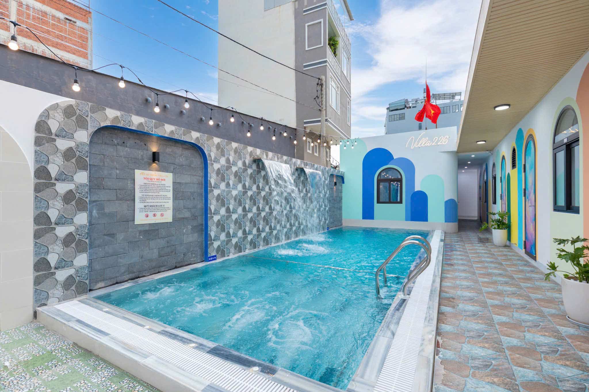 🌊 Hồ bơi 50m2 có sục massage jacuzzi, thác nước đôi.